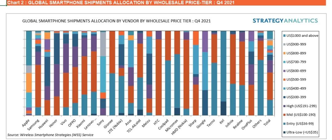 Strategy Analytics:2021 年 Q4 全球智能手机批发收益同比增长 6%
